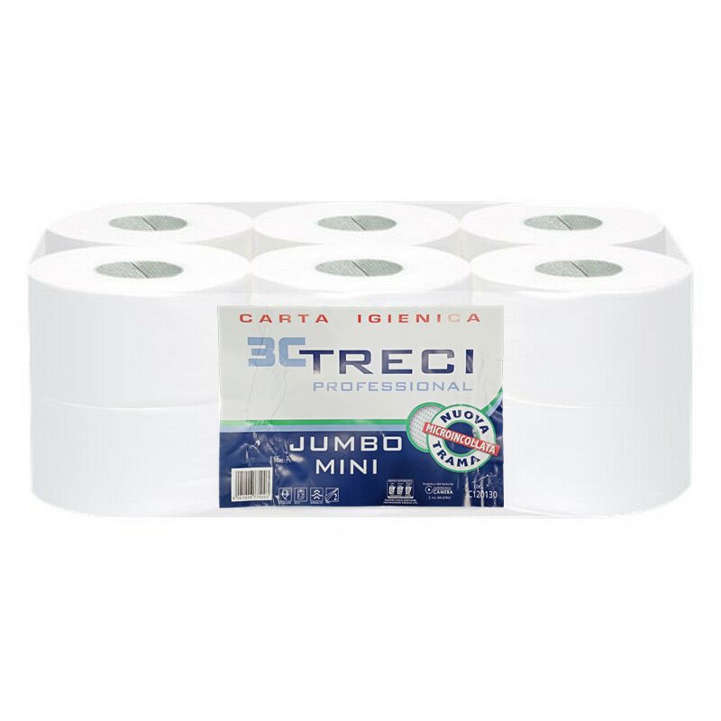 3C TRECI professional JUMBO MINI CARTA IGIENICA 2 veli per dispenser bagno 200mt, in confezione da 12 pezzi.