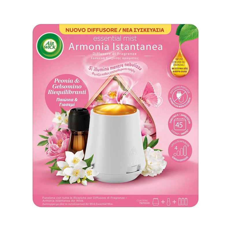 AIR WICK Diffusore di fragranze essential mist ARMONIA ISTANTANEA Peonia & Gelsomino riequilibranti, da 20ml.