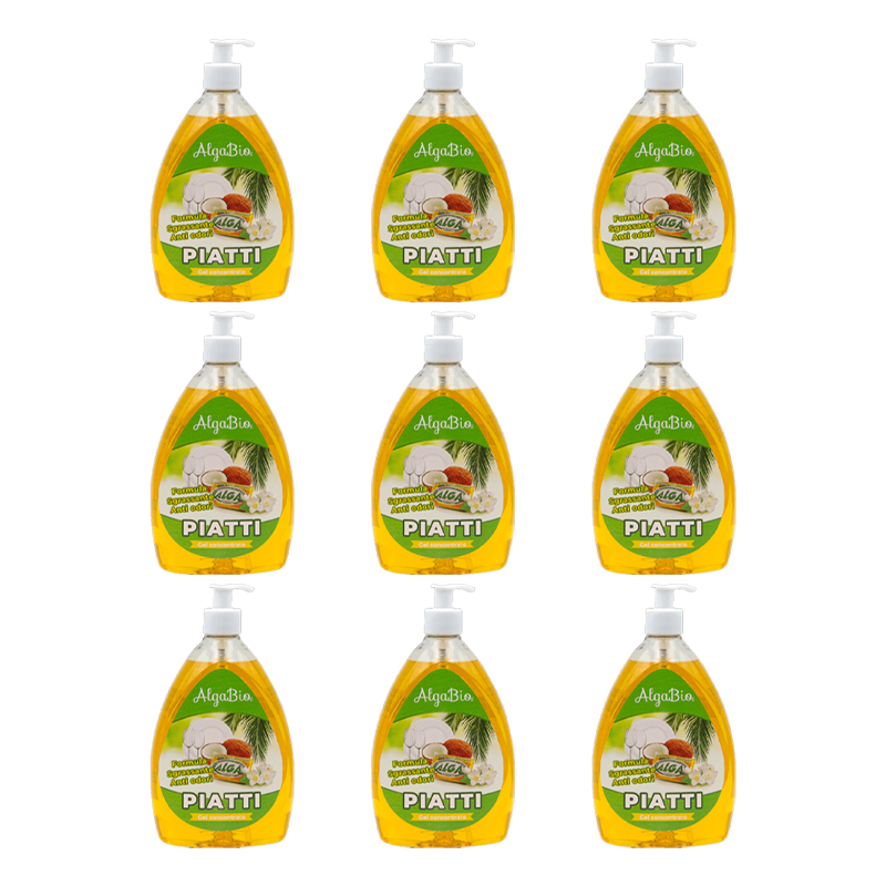 ALGA BIO L’Originale detersivo piatti in gel concentrato antiodori, 9 pezzi da 750ml ciascuno.
