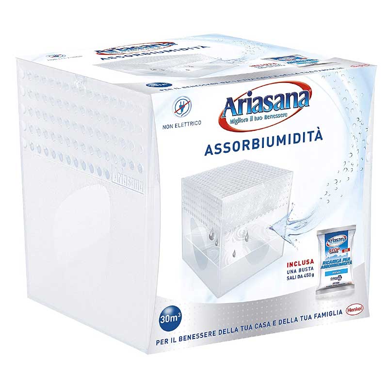 Deumidificatore ARIASANA per assorbire l’umidità e copre fino a 30 m Cubi, per una massima efficacia e lunga durata.