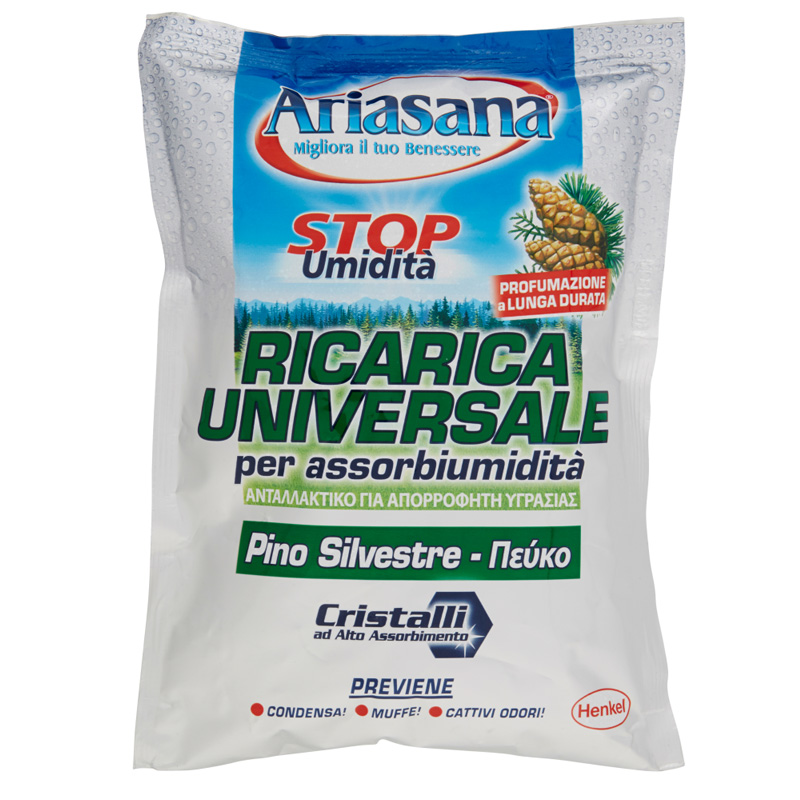 Ariasana ricarica universale, alla fragranza di pino silvestre combattono l’eccesso di umidità, ne prevengono le conseguenze come aria umida, condensa e muffa.