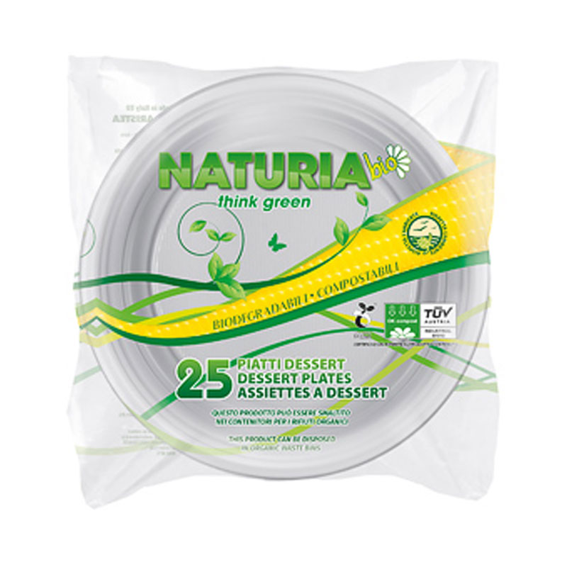 ARISTEA NATURIA PIATTI DESSERT biodegradabili e compostabili monouso Ø 17cm, in confezione da 25 pezzi.