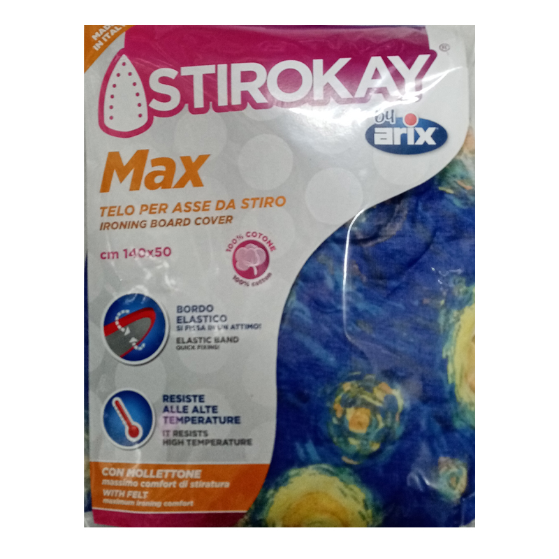 ARIX STIROK Max, Telo per Asse da Stiro con bordo elastico, con mollettone, resistente alla alte temperature, 140x50cm.