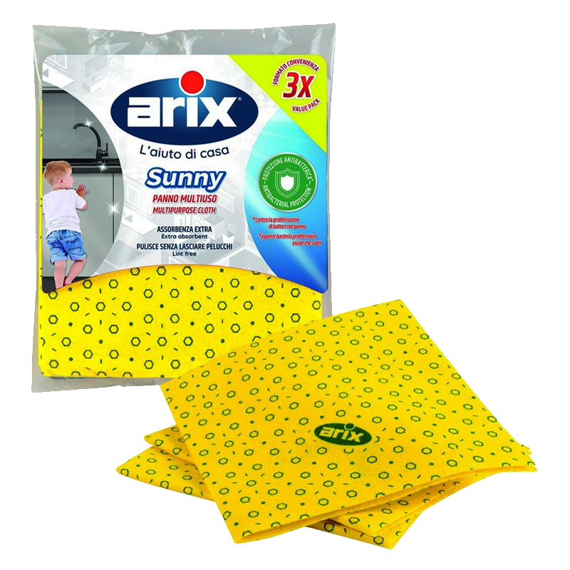 Realizzato con fibre di alta qualità, il panno ARIX Sunny rimuove efficacemente sia lo sporco secco che quello grasso senza lasciare residui o pelucchi.