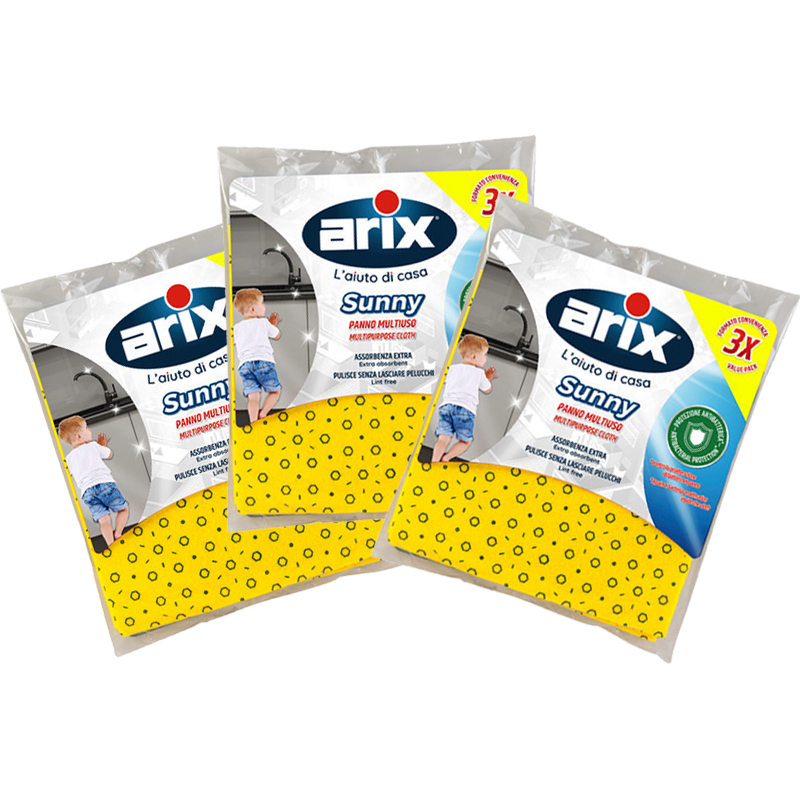 ARIX SUNNY panno multiuso in tessuto assorbenza extra, in 3 confezioni da 3 pezzi ciascuna.
