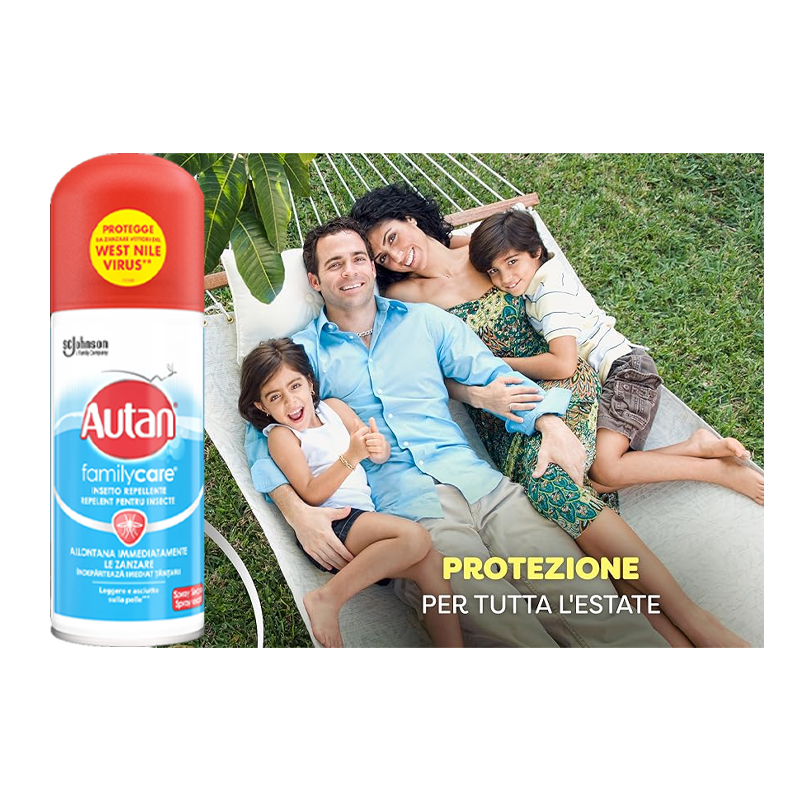 Autan Family Care Spray Secco è un insetto-repellente leggero e asciutto, che quasi non si sente.