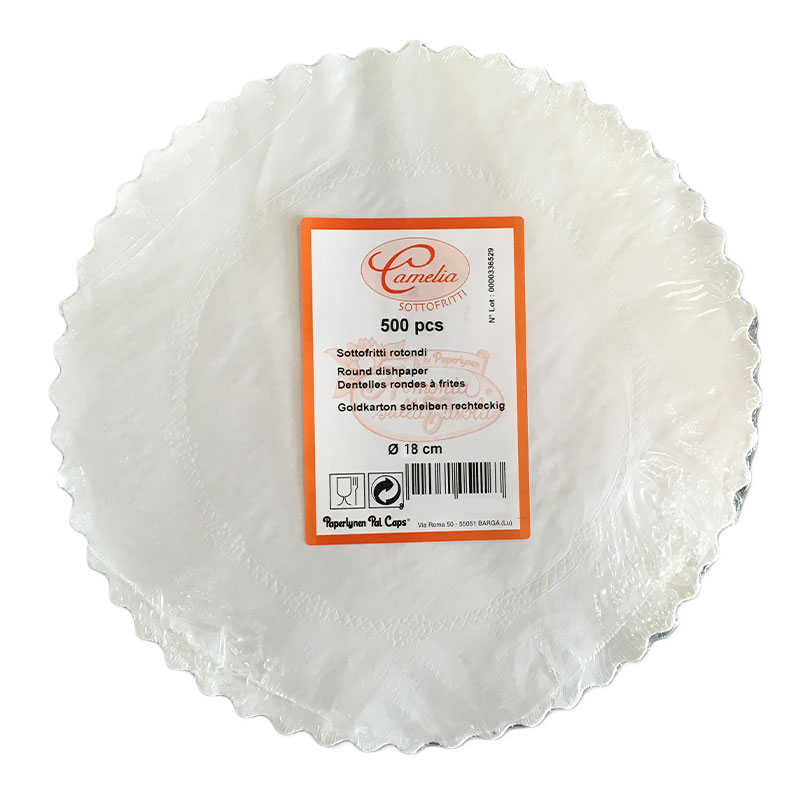 CAMELIA Sottofritti Rotondi Ø 18cm, confezione da 500 pezzi.