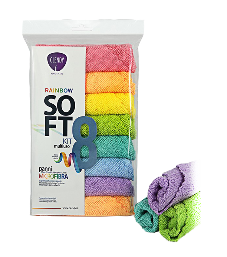 CLENDY RAINBOW SOFT Panni Microfibra KIT MULTIUSO, misura 30×30 cm, confezione da 8 pezzi.