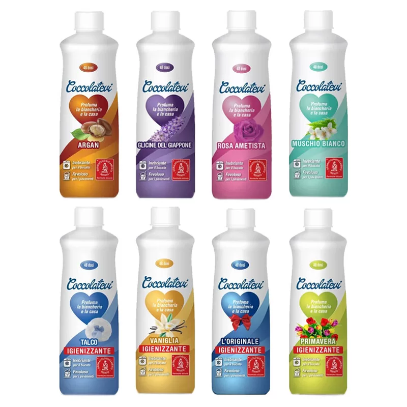 Coccolatevi è un profumatore per bucato e un detergente universale per tutte le superfici.
