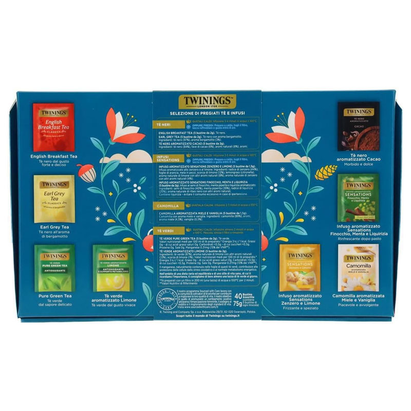 COFANETTO BOX REGALO TWININGS TÈ E INFUSI ASSORTITI CONTENENTE 40 FILTRI (5 PER OGNI MISCELA) da 75g.
