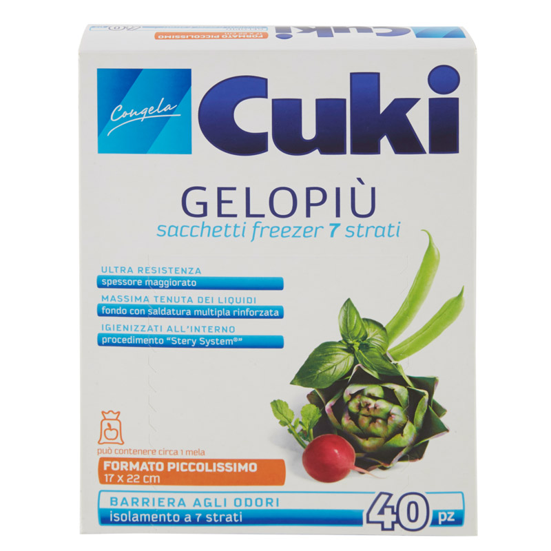 CUKI GELOPIU’ Sacchetti Freezer formato Piccolissimo 17 x 22cm, confezione di 40 pezzi.
