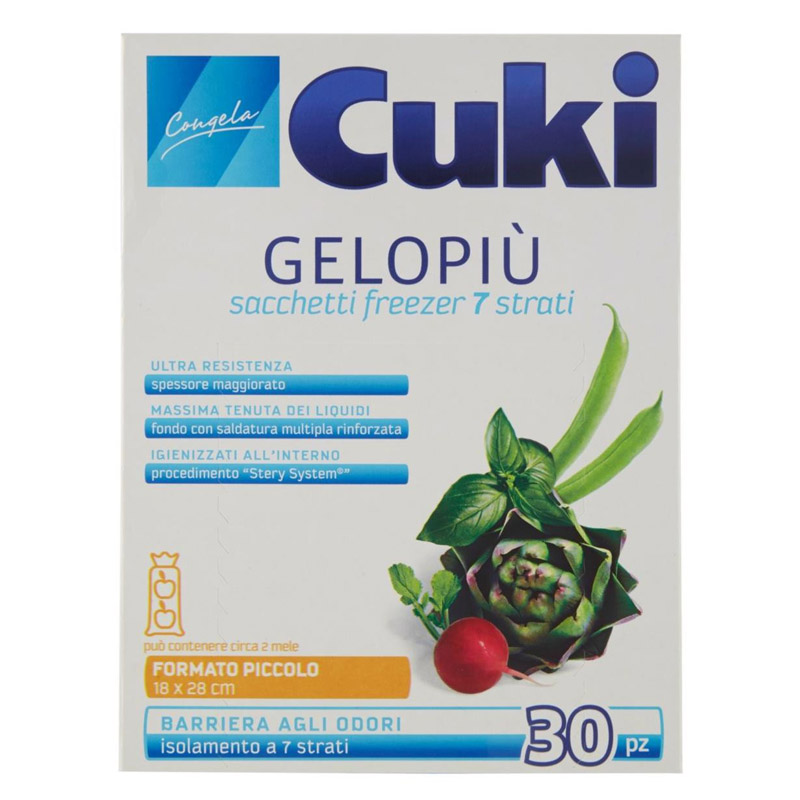 CUKI GELOPIU’ Sacchetti Freezer formato Piccolo 18 x 28cm, confezione di 30 pezzi.