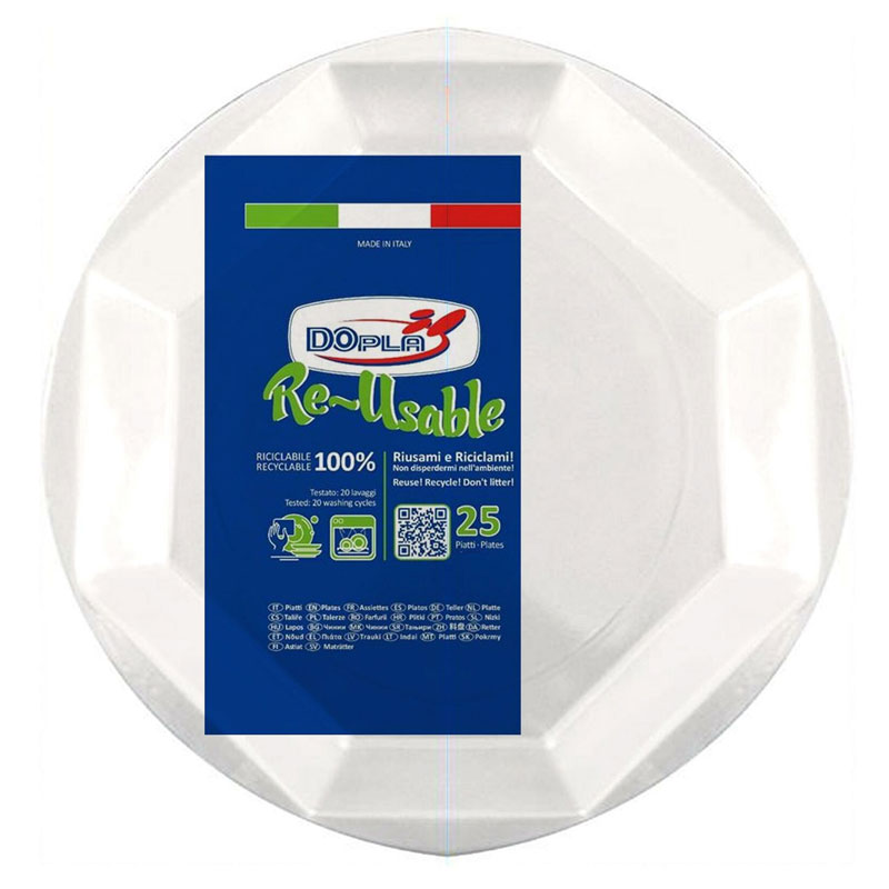 Dopla re-usable, piatti fondi in plastica: questo prodotto è stato pensato, progettato e offerto sul mercato per essere riutilizzato e riciclato: può essere lavato a mano ed in lavastoviglie (per un massimo di 20 lavaggi – max 90 gradi), e riposto all’interno della busta utilizzando l’etichetta per la chiusura.