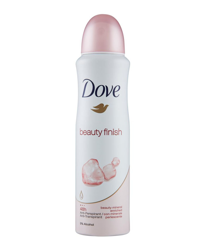 DOVE BEAUTY FINISH deodorante spray, in confezione da 150 ml.