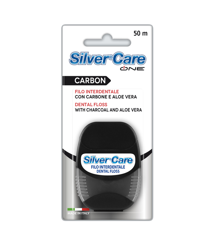 Filo Interdentale SILVER CARE ONE CARBON con CARBONE ATTIVO e ALOE VERA, da 50 mt.
