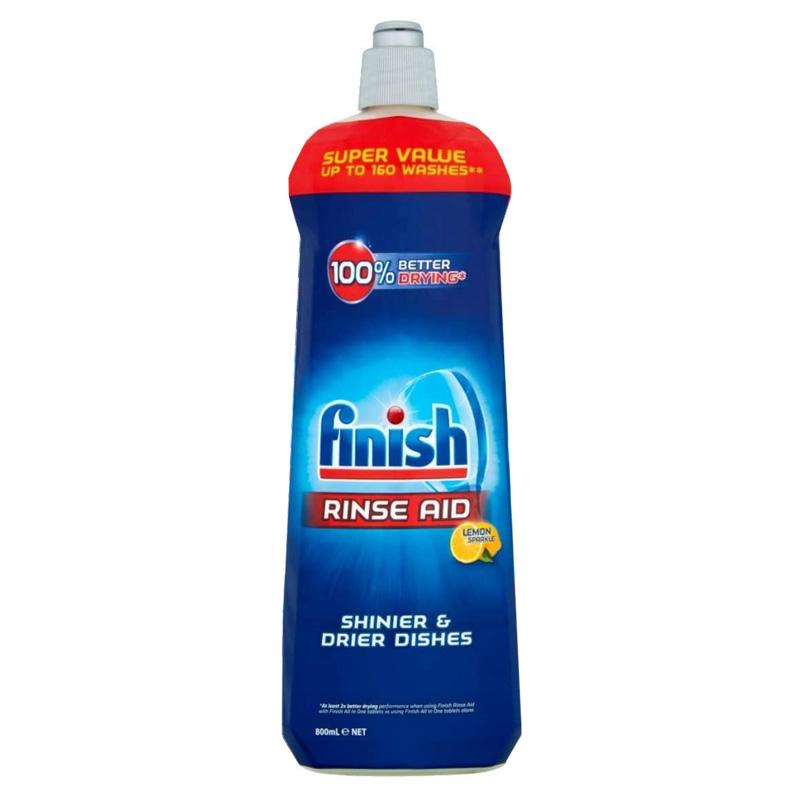 FINISH RINSE AID Brillantante lavastoviglie al Limone, in confezione da 800 ml.