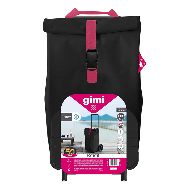 Gimi Kool è il carrello innovativo che preserva la freschezza della vostra spesa durante il viaggio verso casa, grazie al suo rivestimento isolante interno. La maniglia telescopica può essere regolata all’altezza più consona; si avvale di 2 grandi ruote in materiale elastico che assicurano silenziosità e comfort anche su terreno accidentato come il prato di un pic nic. La sacca è antipioggia, con una chiusura a rullo e fermaglio ed una straordinaria capienza quando aperta di 60 litri.