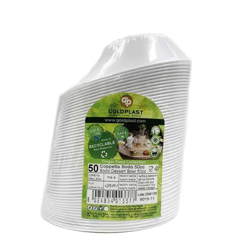 Gold Plast COPPETTA SODO finger food 50cc bianca monouso, in confezione da 50 pezzi.