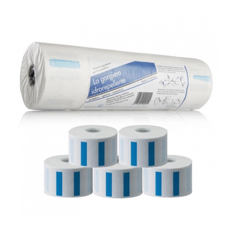 LA GORGIERA IDROREPELLENTE carta da collo protettiva, igienica ed economica per barbiere, confezione da 5 rotoli da 100 pezzi.
