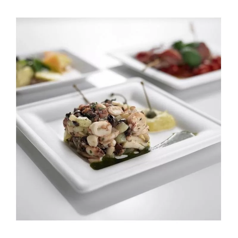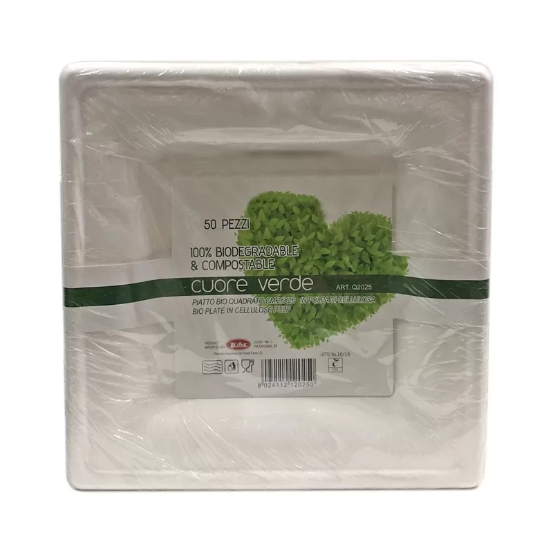 50 pezzi LEONE PIATTI QUADRATI IN CELLULOSA 26 X 26CM, MONOUSO 100% BIODEGRADABILI.