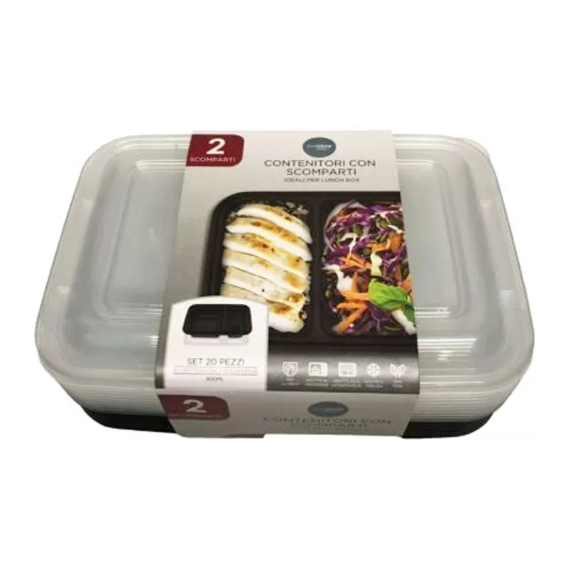 - 10 contenitori a 2 scomparti, dalla capacità di 900ml;