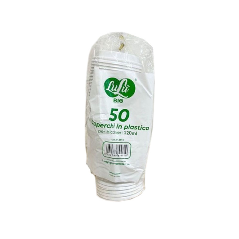 50 pezzi LULÙ BIO Coperchi in plastica per bicchieri da 120ml.