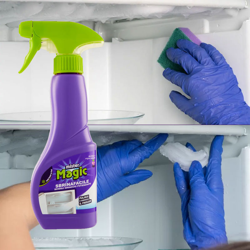 Mister Magic Sbrinafacile Sciogli Ghiaccio Potenziato grazie alla sua nuova formula dall’effetto deghiacciante potenziato a base di alcool di origine naturale, accelera il processo di sbrinamento del congelatore, facilitando la rimozione del ghiaccio. Indicato per una buona manutenzione del freezer. Non danneggia le guarnizioni.