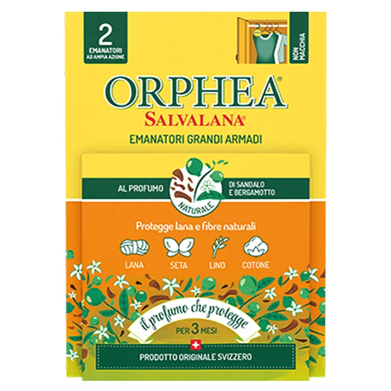 Gli emanatori Orphea Salvalana sono realizzati in pura cellulosa imbevuta nell’opificio svizzero del Canton Ticino e sono pensati per rendere anche il tuo grande armadio una zona piacevolmente profumata e protetta.