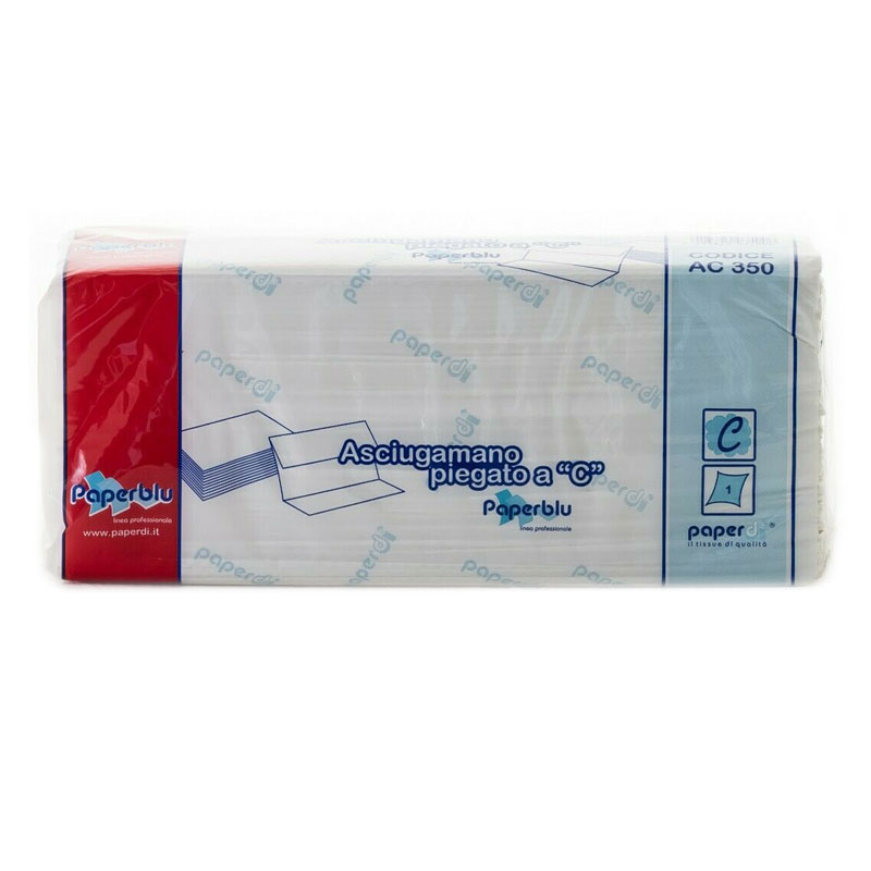 Paperblu asciugamani piegati a C, sono i nuovi asciugamani di Paperdì in pura cellulosa piegati a C da raccoglitore. Il nuovo sistema microincollato fa si che questi asciugamani, siano più resistenti dei classici asciugamani di carta che troverete in giro. Con certificazione ecolabel, gli asciugamani sono al 100% riciclabili e non inquinano l’ambiente.