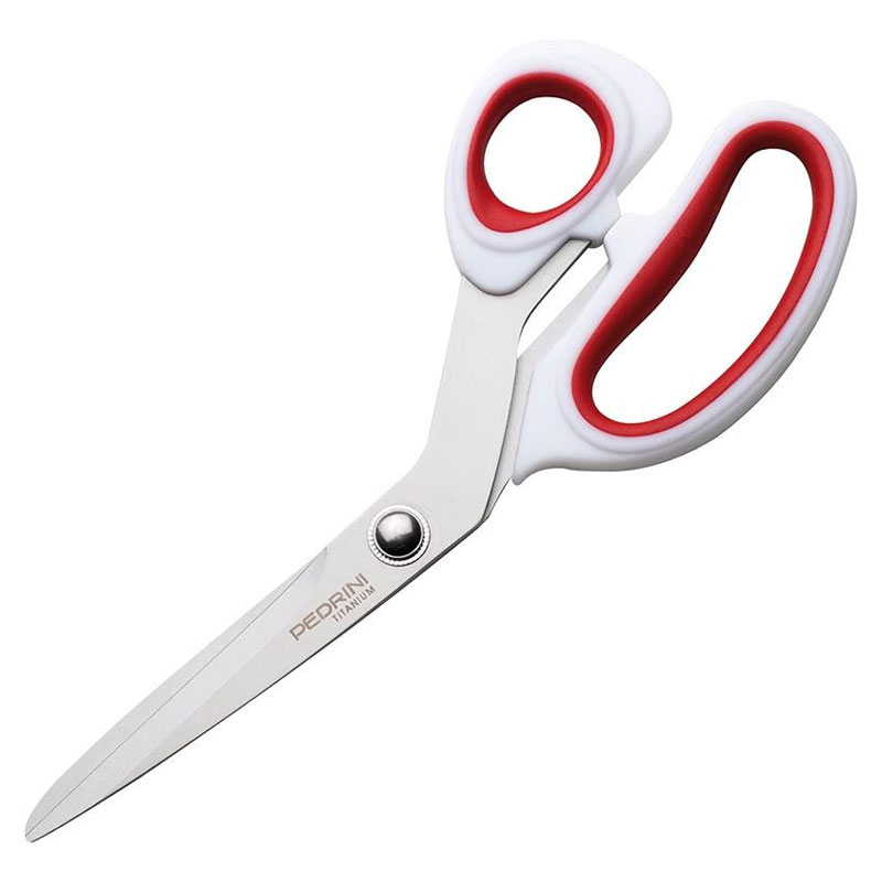 Pedrini Forbici universali Multiuso da cucina, si adattano ad ogni tipo di taglio. Pratiche e resistenti, sono dotate di lame in acciaio inossidabile con rivestimento in titanio per durare nel tempo. Adatte a ogni impiego in cucina e per tutti gli utilizzi in casa. Prodotto lavabile in lavastoviglie.