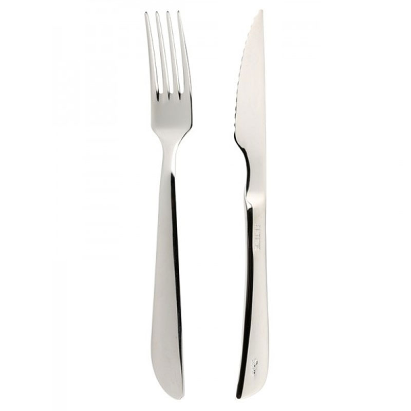 Forchetta + Coltello, posate per la pizza, della CATERI’ PINTINOX. Linea di posate in acciaio inox pratica ed elegante ideata per il servizio di pizza, focacce e farinate oltre che per il servizio delle carni.