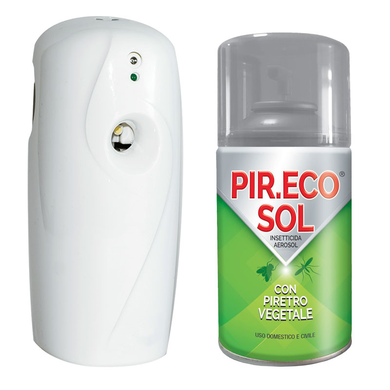 PIR.ECO SOL Insetticida Aerosol per uso domestico e civile, in confezioni da 250ml + Erogatore Temporizzato regolabile 7,5 – 15 – 22,5 minuti.