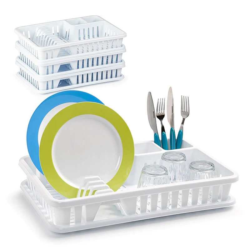 Il pratico scolapiatti da appoggio plastica è realizzato in plastica priva di BPA e può essere facilmente pulito con un panno umido o in lavastoviglie.