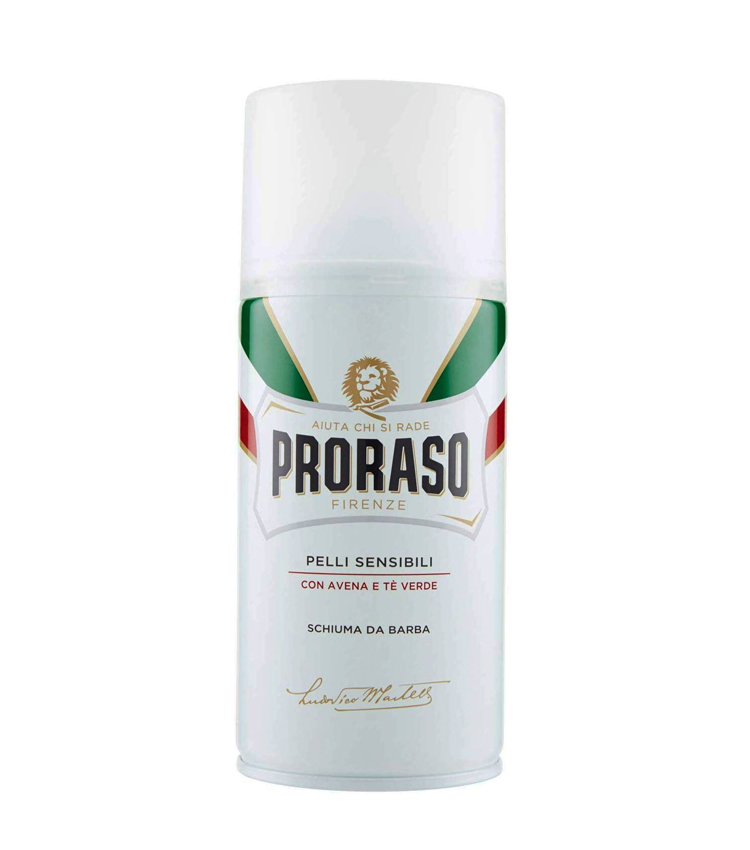 PRORASO Schiuma da Barba PELLI SENSIBILI con AVENA e Tè Verde, in confezione da 300 ml.