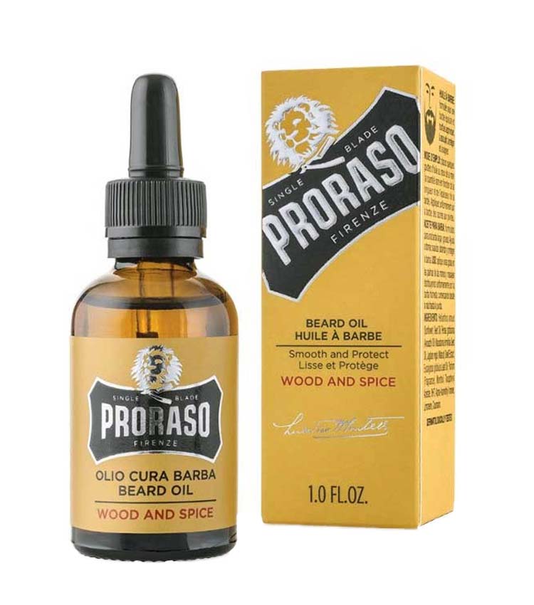PRORASO WOOD AND SPICE Olio Cura Barba, in confezione da 30 ml.