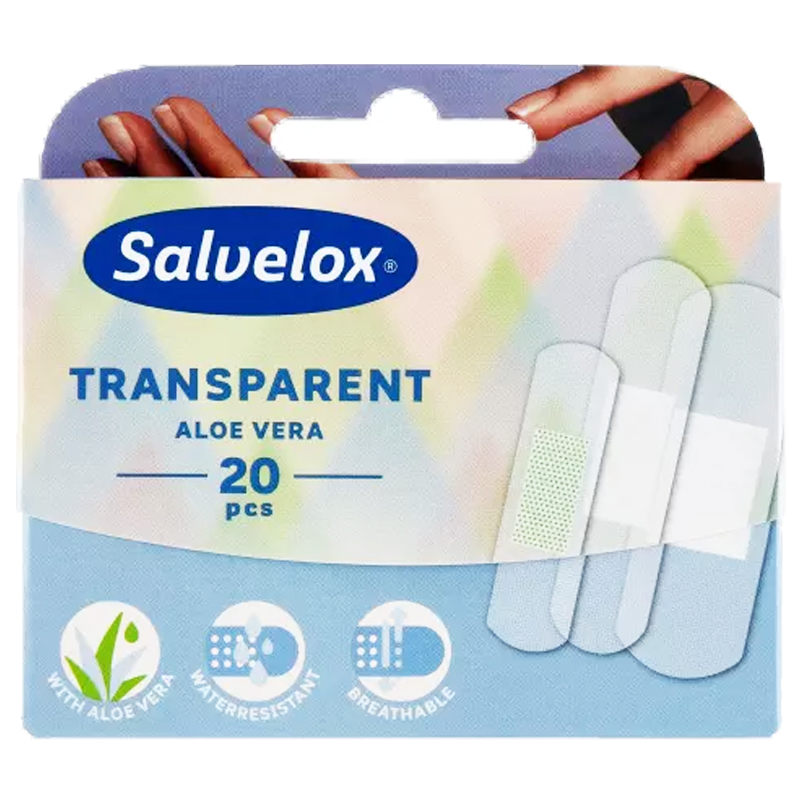 SALVELOX TRASPARENT Cerotti trasparenti con aloe vera resistente all’acqua misure assortite, in confezione da 20 pezzi.