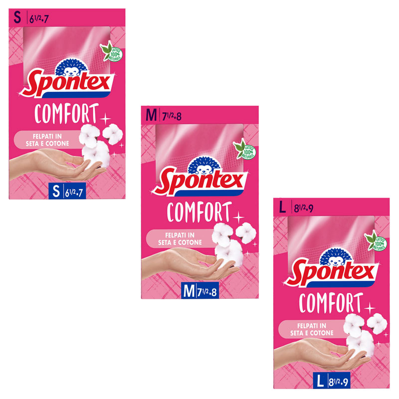 12 paia SPONTEX COMFORT Guanti in lattice felpati in seta e cotone.