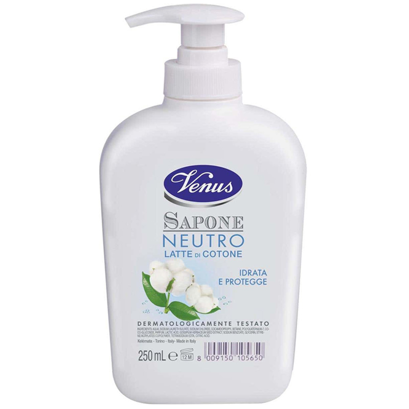 VENUS SAPONE NEUTRO Liquido con Latte di Cotone, in confezione da 250 ml.