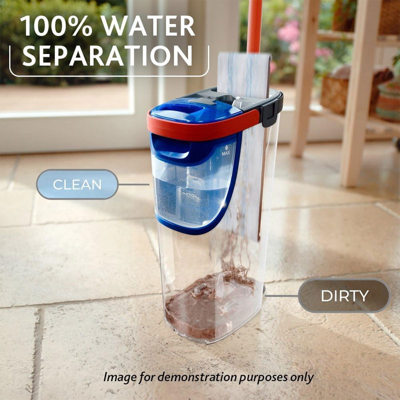 H2Pro Flat Mop di Vileda è un innovativo sistema lavapavimenti a piastra piatta che, grazie all’esclusivo design a due serbatoi, separa completamente l’acqua pulita da quella sporca.