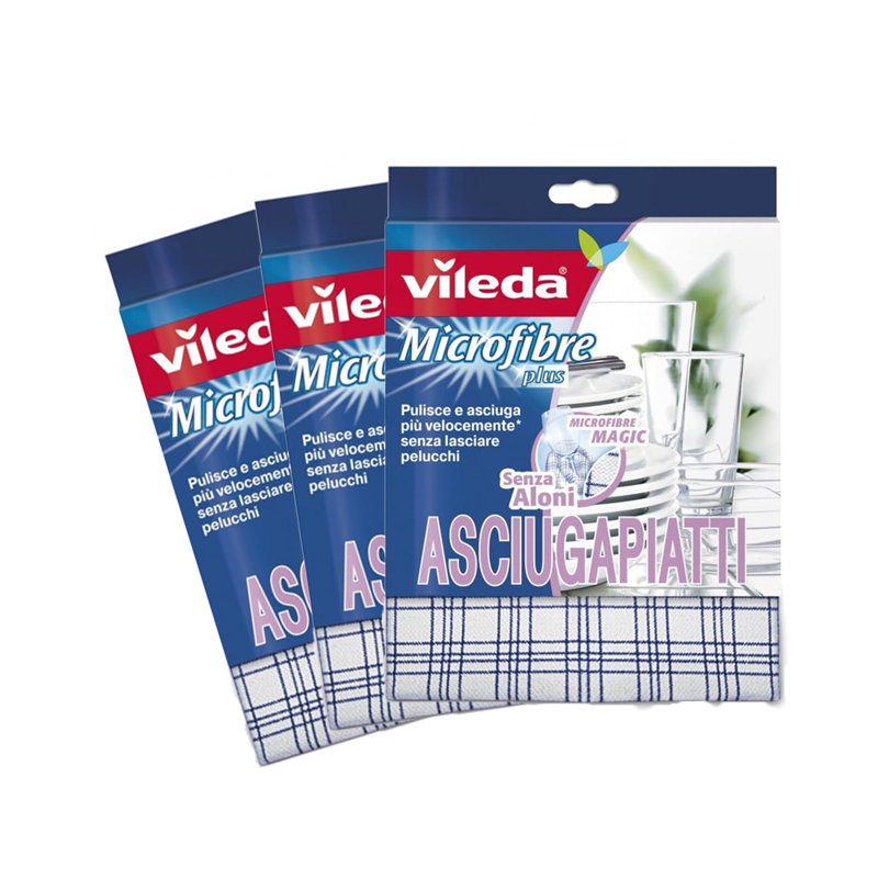 VILEDA MICROFIBRE PLUS panno asciugapiatti in microfibra 55×40 cm. – 3 pezzi
