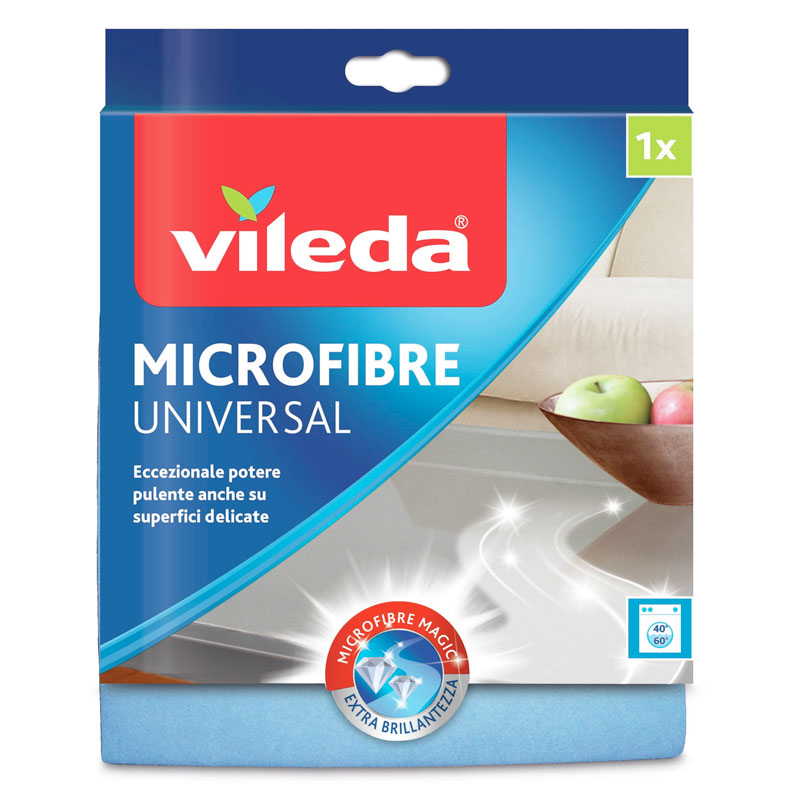 Vileda Microfibre Universal garantisce la perfetta pulizia di tutte le superifici anche solo con acqua. Rimuove efficacemente e con una sola passata anche lo sporco più ostinato. Pulisce in profondità senza lasciare pelucchi e aloni ed inoltre, con il nuovo trattamento Antibatterico “Odor Stop”, previene la proliferazione di germi e batteri, causa principale della formazione di cattivi odori nel panno.