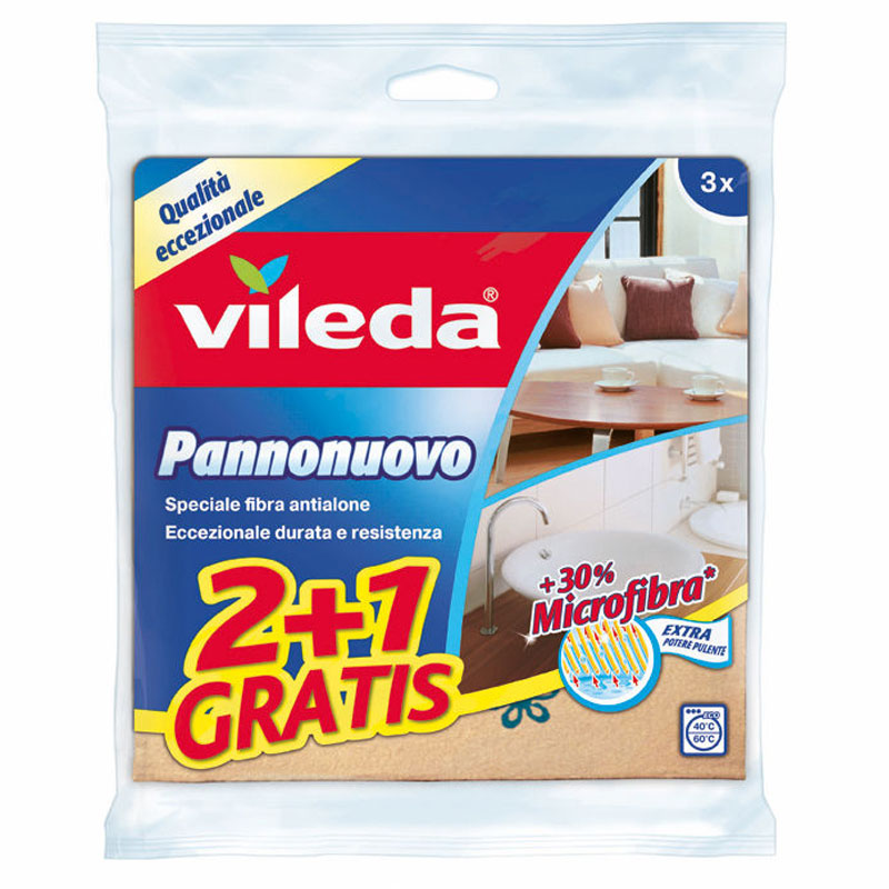 Pannonuovo è il panno di Vileda per tutte le pulizie quotidiane. Questo panno multiuso può essere utilizzato sia umido per spolverare che da bagnato per lavare: la sua speciale fibra è indicata per rimuovere agevolmente le macchie senza lasciare aloni.
