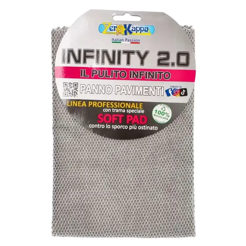 Il Panno Pavimenti in microfibra INFINITY 2.0 è realizzato con tecnologia Soft Pad a nido d’ape, grazie alla quale ha un fortissimo potere pulente sullo sporco più ostinato e non si arrende alle superfici più grasse.